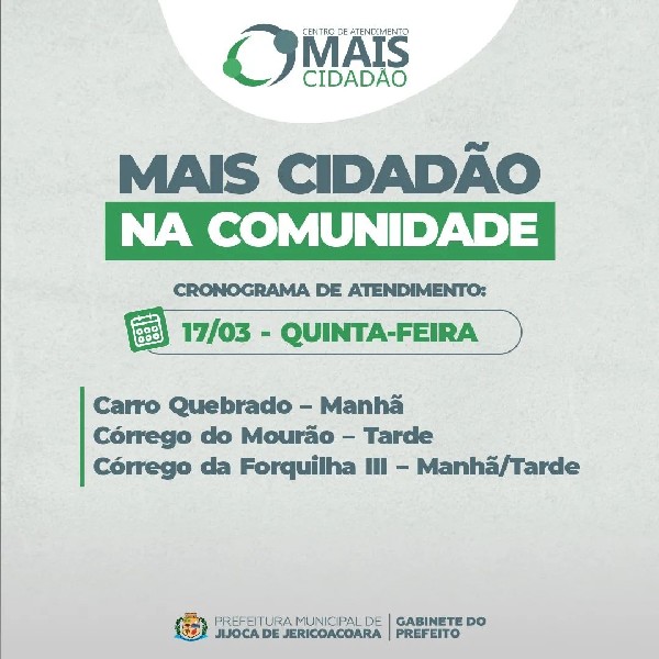 Veja nas imagens a programação das comunidades que terão o "MAIS CIDADÃO NA COMUNIDADE" esta semana.