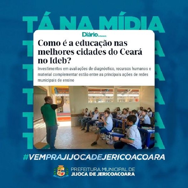 ??Voc sabia? O municpio de Jijoca de Jericoacoara est entre os melhores sistemas educacionais do Brasil, ficando em 4 lugar no ranking nacional do ndice de Desenvolvimento da Educao Bsica (Ideb) 2021.
