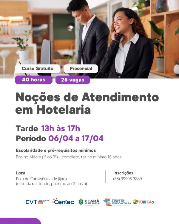 Mais do que cursos, essa é uma oportunidade de transformar conhecimento em renda, atendimento em excelência e vocação em profissão. Jijoca segue avançando, preparando sua gente para receber o mundo com ainda mais qualidade e orgulho.