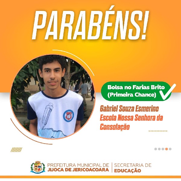 É a Prefeitura Municipal de Jijoca de Jericoacoara, através da Secretaria de Educação, buscando cada vez mais evoluir a nossa educação na busca dos melhores índices pelo MEC. Queremos Parabenizar os cinco alunos premiados com bolsas de estudos do programa "Primeira Chance" e da Associação Cactus, parceria do município desde de 2018, que vem mudando a vida de muitos estudantes.